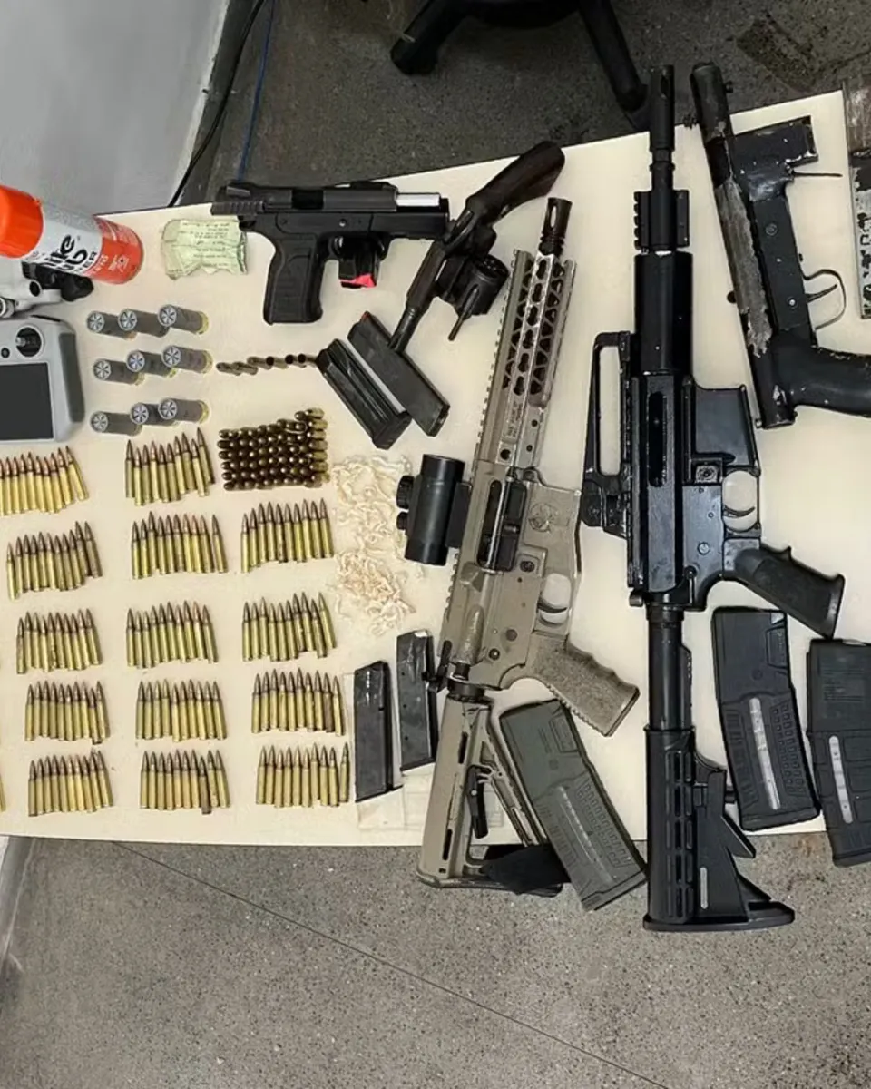 Com os suspeitos, foram apreendidos dois fuzis - um deles equipado com luneta para disparos de longa distância -, uma espingarda calibre 12, uma submetralhadora, uma pistola, um revólver, além de drogas, munições e um drone.
